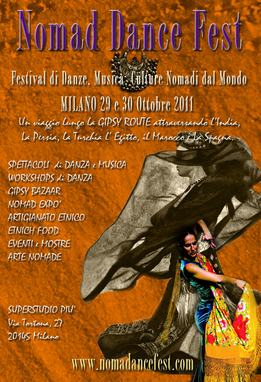 Anche voi come Syusy siete appassionati di danza, musica e culture nomadi? A Milano il 29 e 30 ottobre si svolge per la prima volta nello Superstudiopiù di via Tortona il Nomad Dance Fest ®, festival ispirato allaGipsy Route, o via dei gitani. Prima di raccontarvi cosa succede, sappiate che presentandovi all’ingresso come lettori di Nomadizziamoci avrete diritto a un trattamento speciale! Una serie di sconti, a partire dalla tessera associativa-biglietto di ingresso a 7 anziché 10 euro e promozioni day-pass per partecipare a workshop e spettacoli.